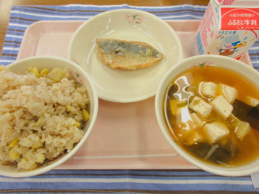 10月1日(水) 栗ごはん 牛乳 あじの塩たつた揚げ みそ汁