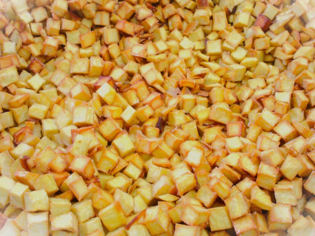 角が立つダイス型のさつまいもは、まるでピラミッドの形成前!?