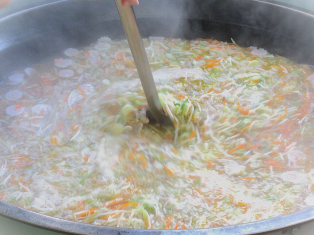 にんじん・ねぎ・もやしをはじめとする、具材たちも気持よさそうに入浴中!!