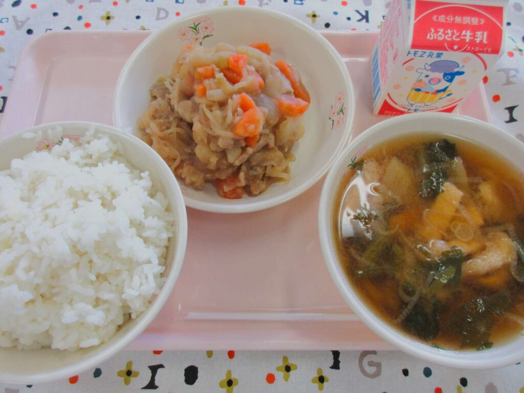 今日の給食は、日本が誇る家庭料理「肉じゃが」をメインにしたごはん献立!