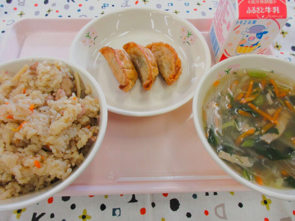 ぎょうざはカリカリの揚げぎょうざ!スープも一緒にいただきます!