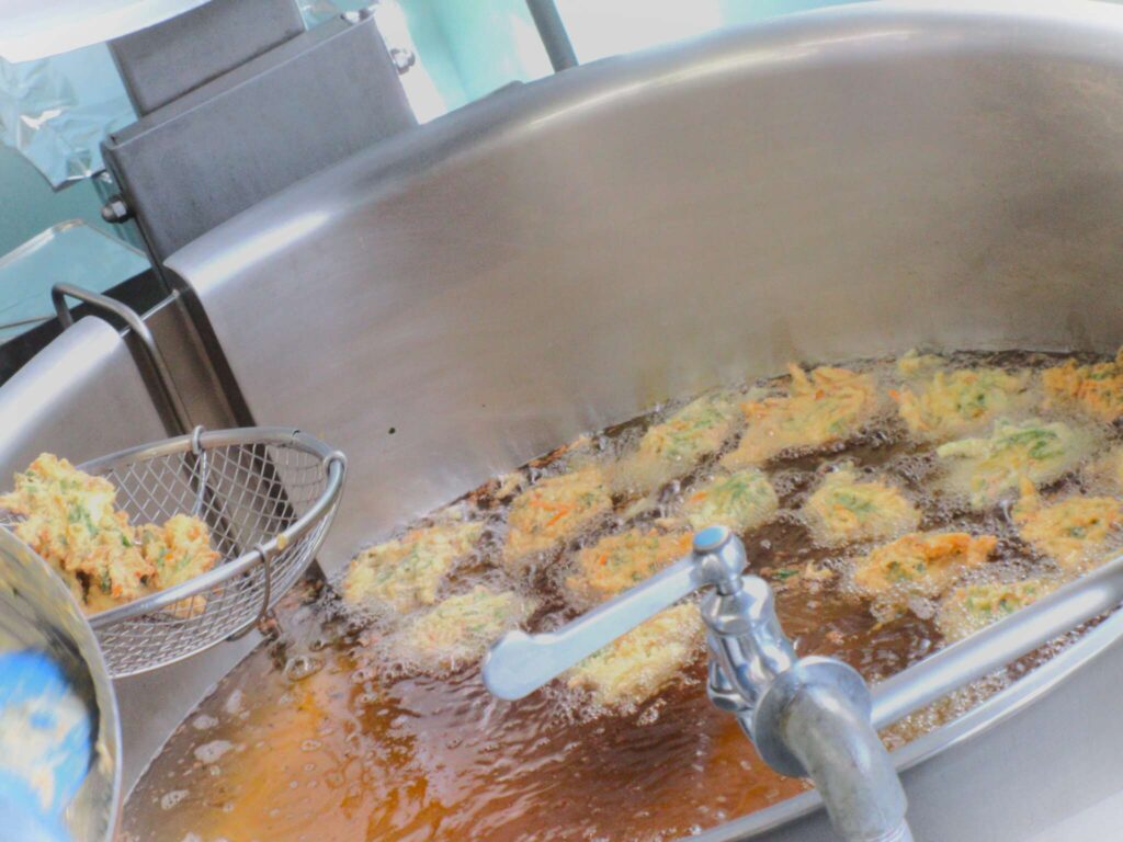 入油は、二人体制!アツアツの油の横で、顔色一つ変えない調理員さんはプロだね!!