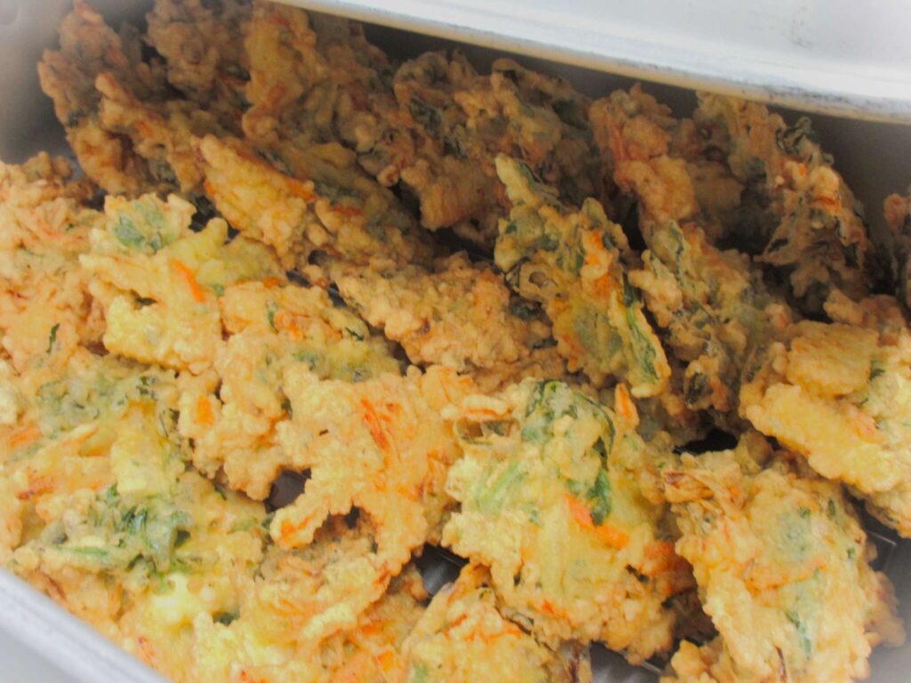 カリッと揚がったかき揚げ!時間がたってしっとりしてもおいしい!