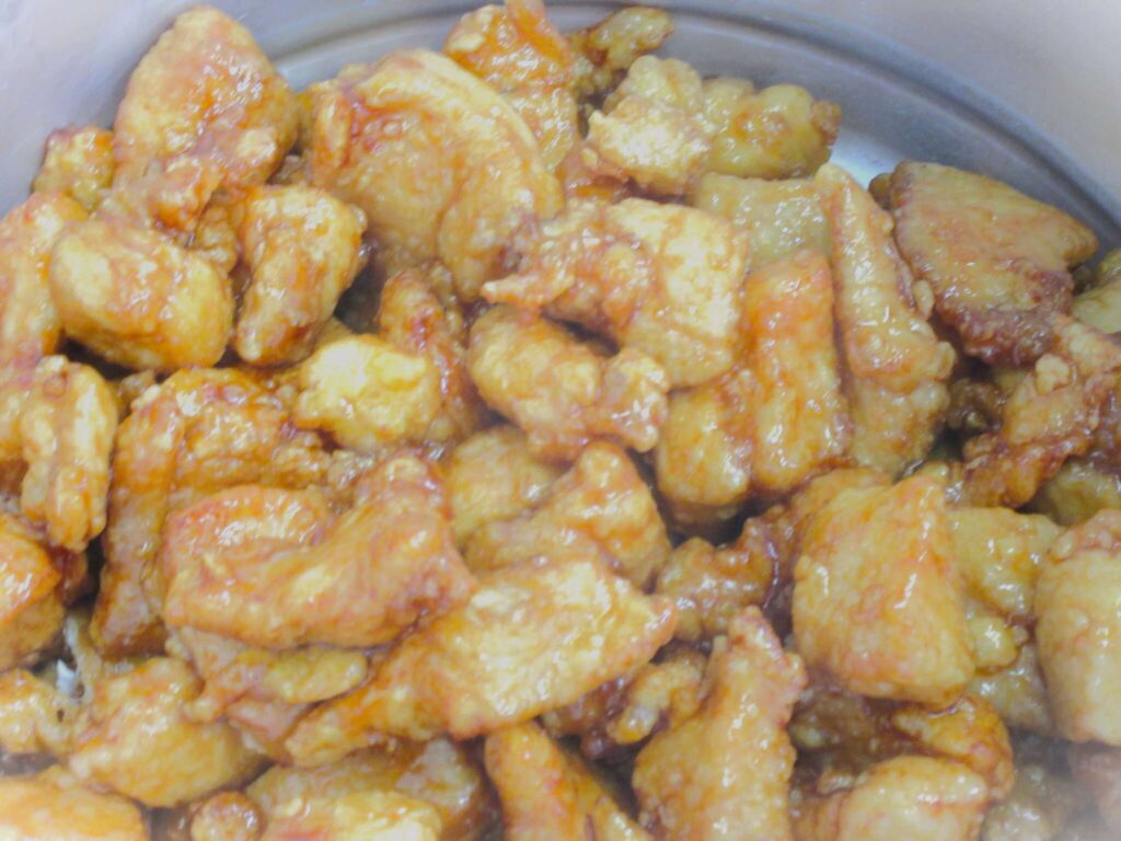 メインの食材はとり肉!さっぱりとしたレモンが香る、おいしいタレがかかっているぞ!