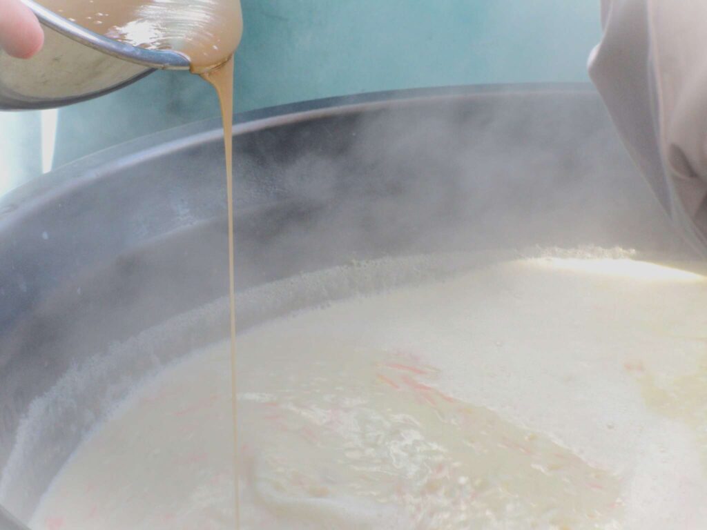 ダマにならないように、少しずつ入れていく通称「クモの糸」!!