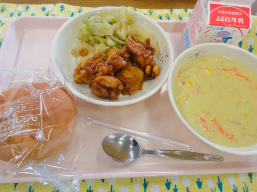 スープは冬らしくクリーム仕立て!コーンの甘みがおいしいのよね!