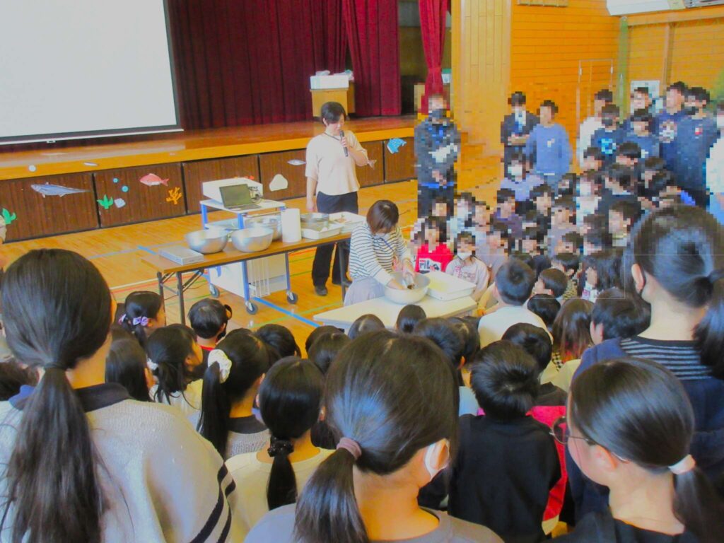 子供たちの目の前での、あじの三枚おろし!いかの解体!