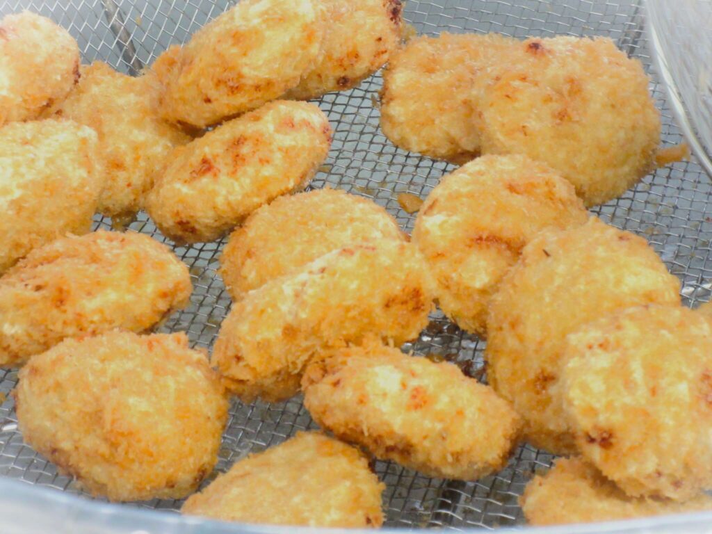 揚がったコロッケは、きつね色でなんともおいしそう!