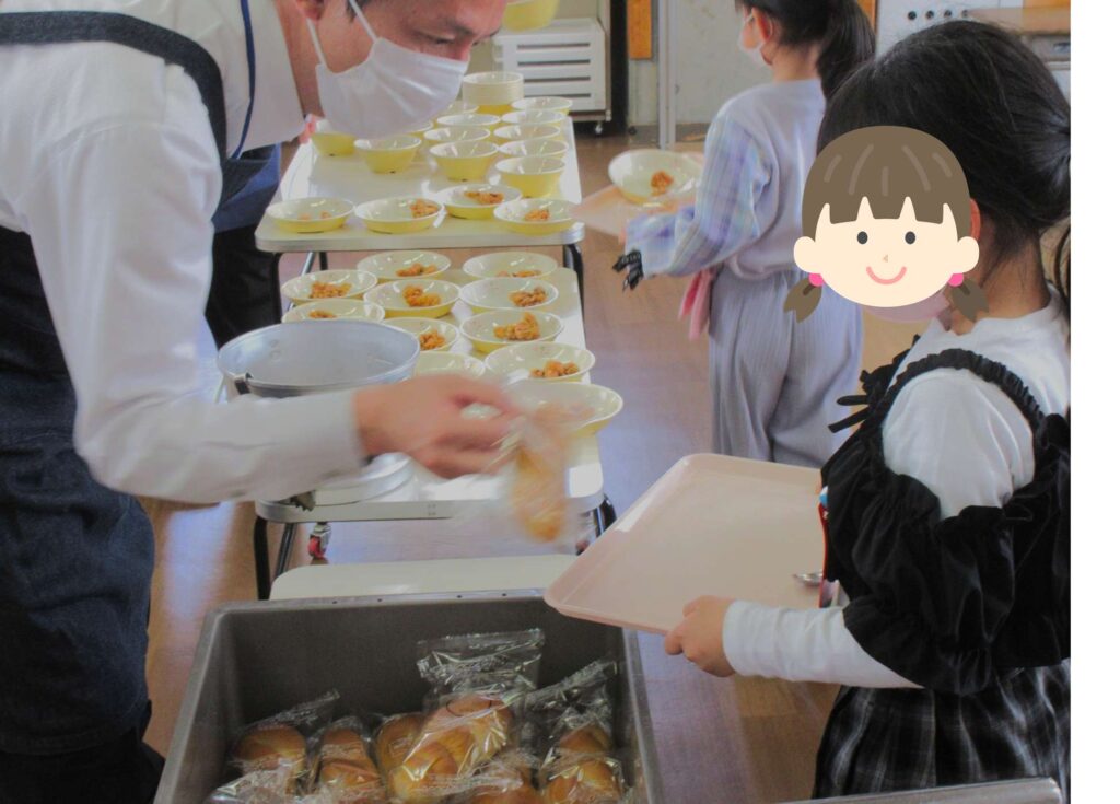 ドキドキの配膳タイム!教頭先生までお手伝いに入り、時間をかけて準備します!