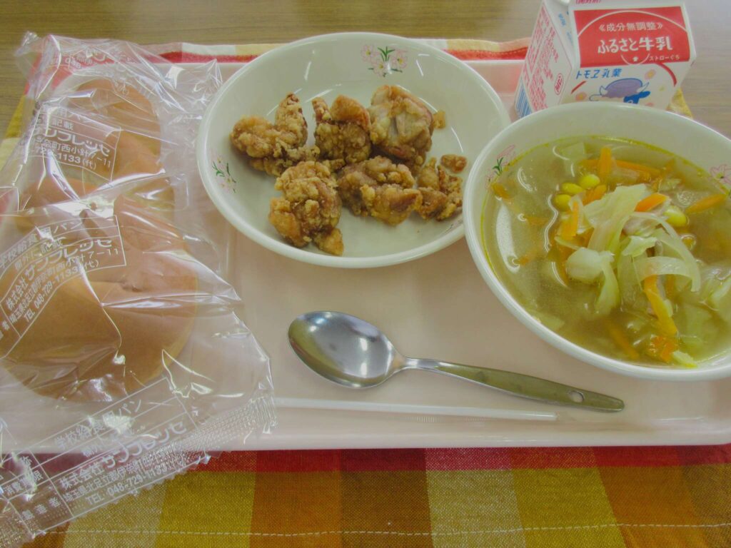1年生初めの献立は、配膳のしやすさを考慮してパン献立でした!