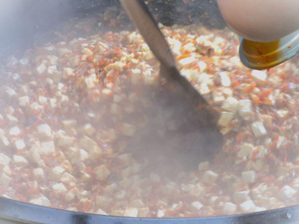 さぁ、最終局面だ!!真っ白なとうふが、マーボーの中に決死のダイブ!!