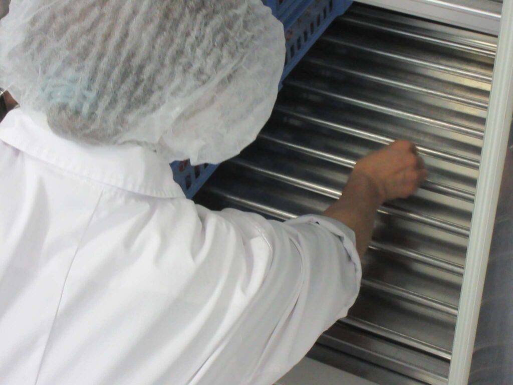 調理員さんの手や、器具の内外に大腸菌群の細菌がいないかのチェックをします!